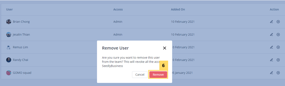 - Click the delete icon next to your selected team member