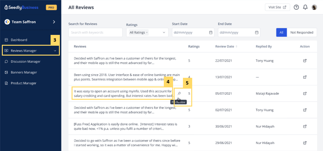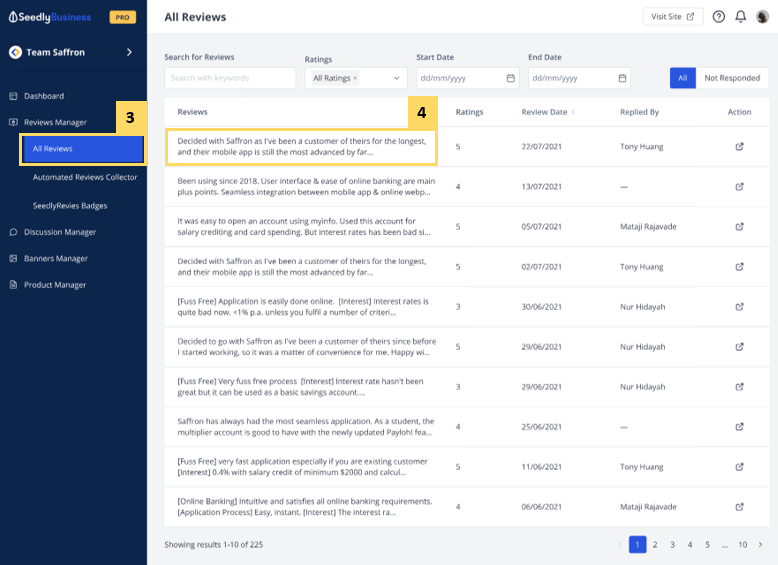 - Select Reviews Manager, then All Reviews