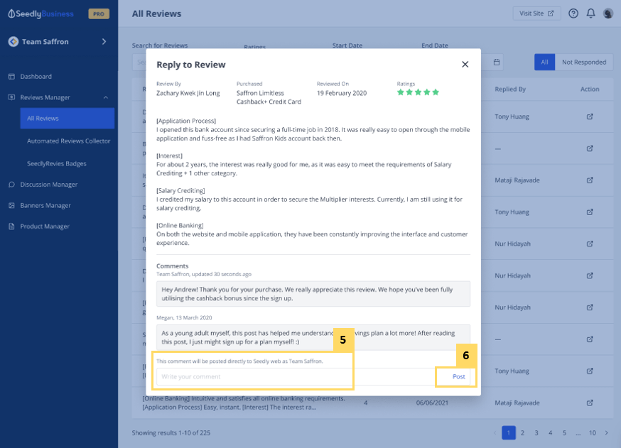 All users in your Business Account are able to reply to reviews on Seedly as a Verified Business Profile. Reviews responded with a Verified Business Profile are accompanied by a verified blue tick.