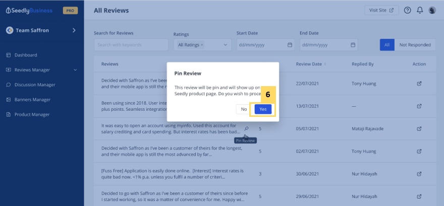 - Click Yes to pin the review